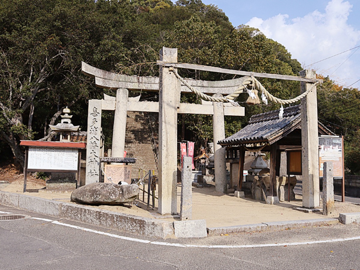 近くの喜多浦八幡大神社。「鎮守の杜」の名称は神社の杜のように人が自然と集い安心できる場所でありたいとの思いから