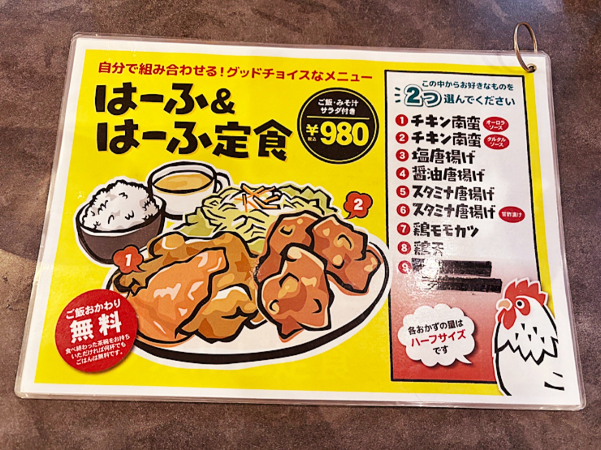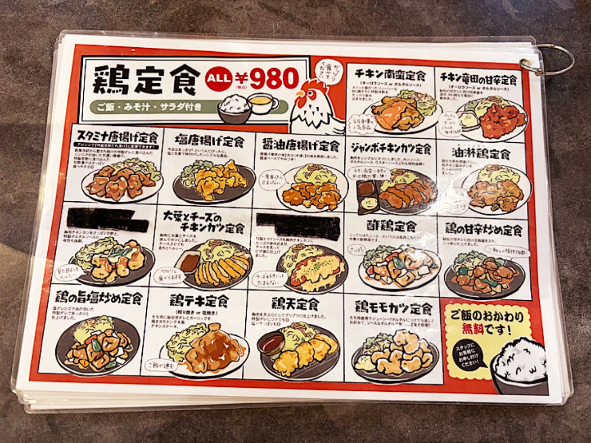 唐揚げの定食が食べられるお店とは知っていましたが、想像以上に種類が多くて驚きました。
