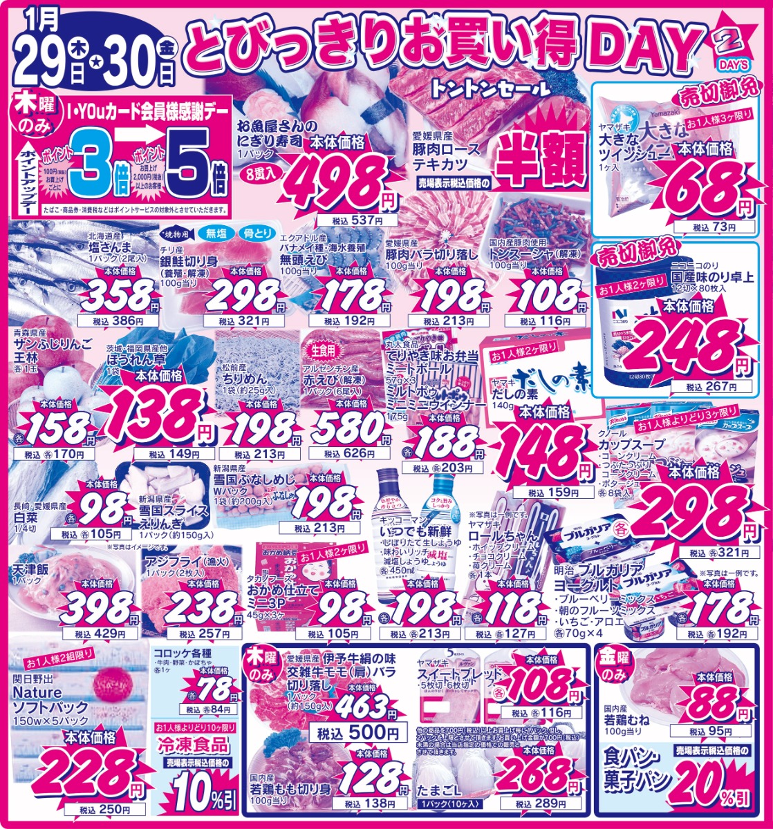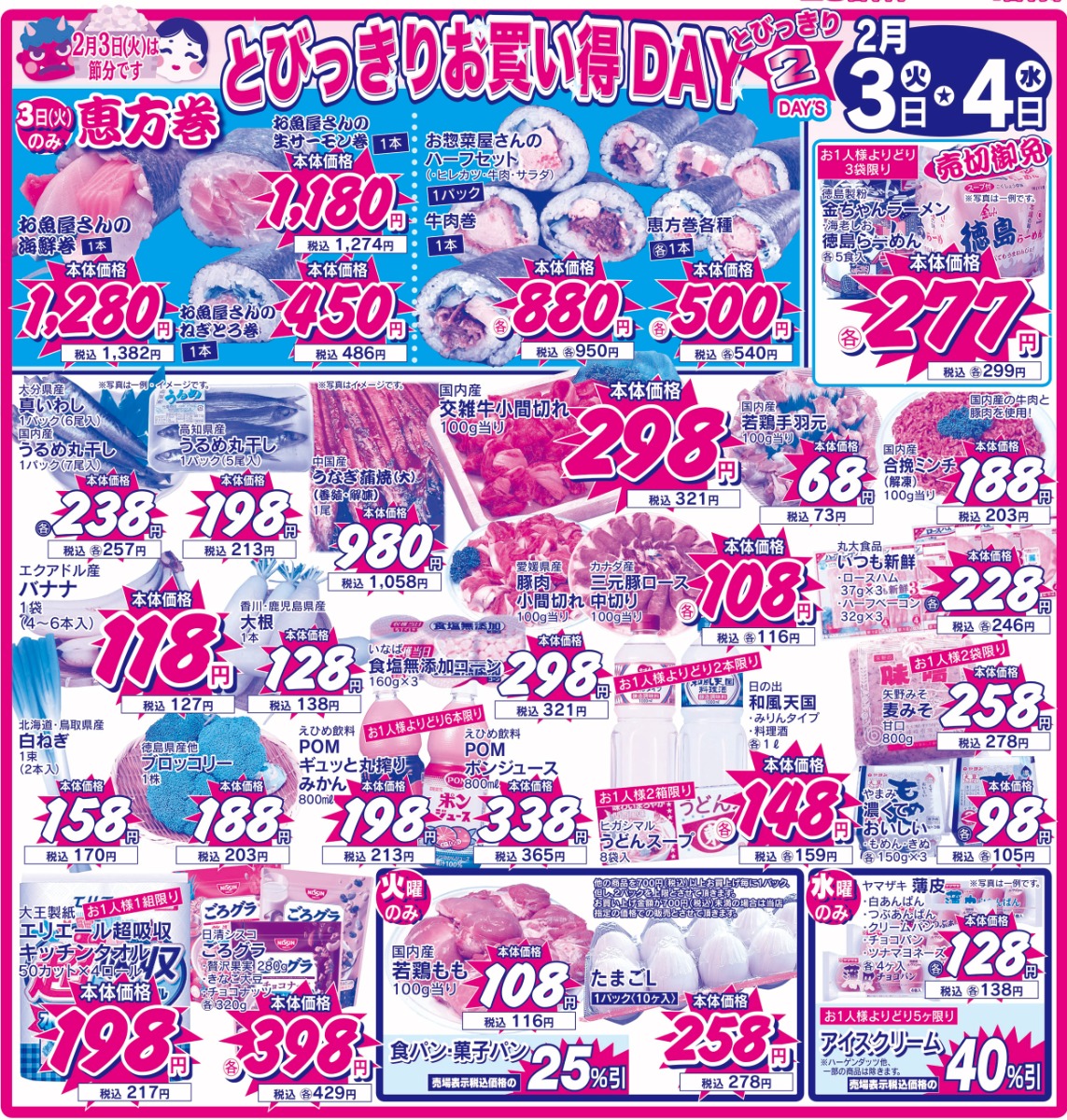 3店舗は日替り商品のみ取り扱いさせていただきます