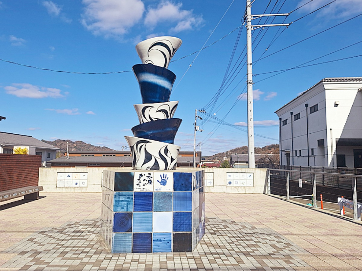 こちらはスタンプラリーのポイントではありませんが、砥部焼伝統産業会館の裏には、映画「未来へのかたち」に登場した砥部焼の聖火台モニュメントが設置されています。