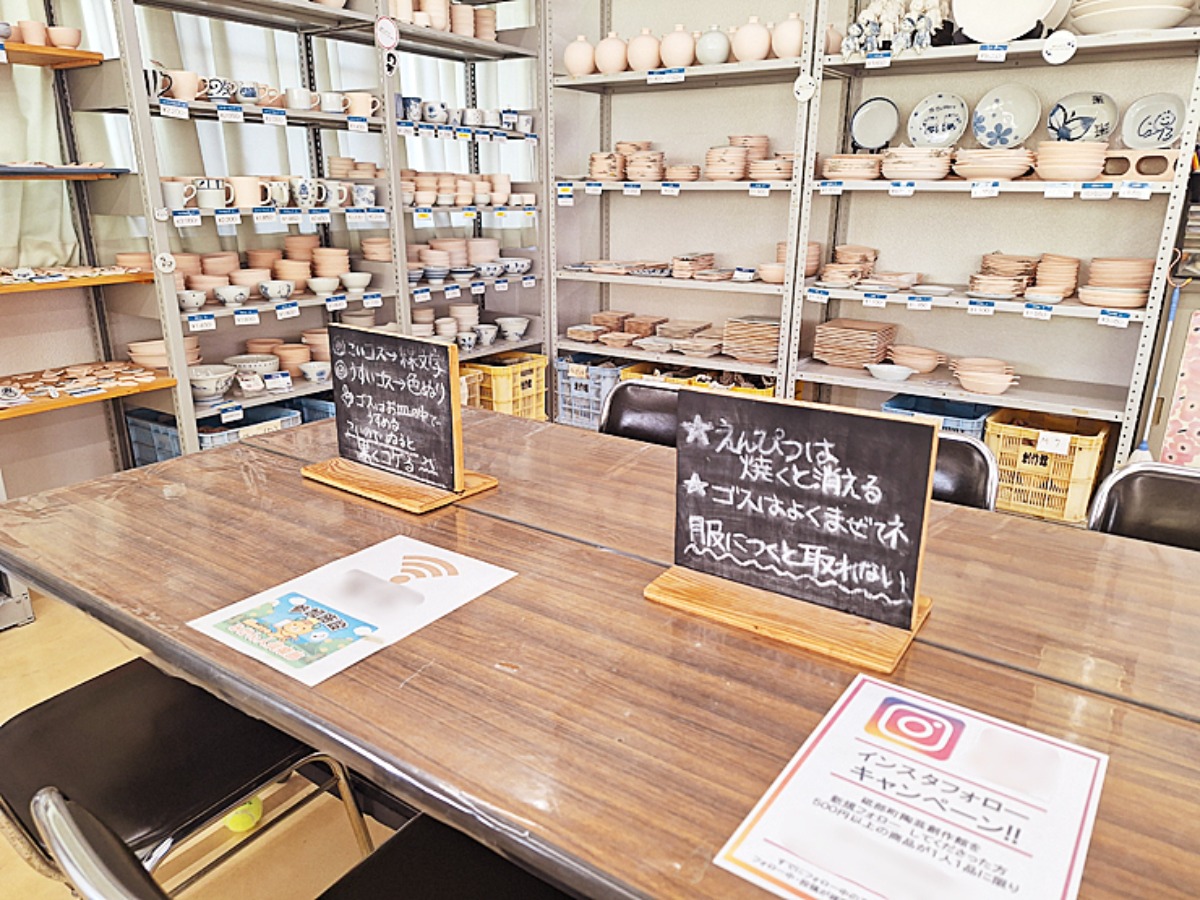 陶芸創作館の入り口を入ると、左手側に絵付け体験ができるフロアがあります。