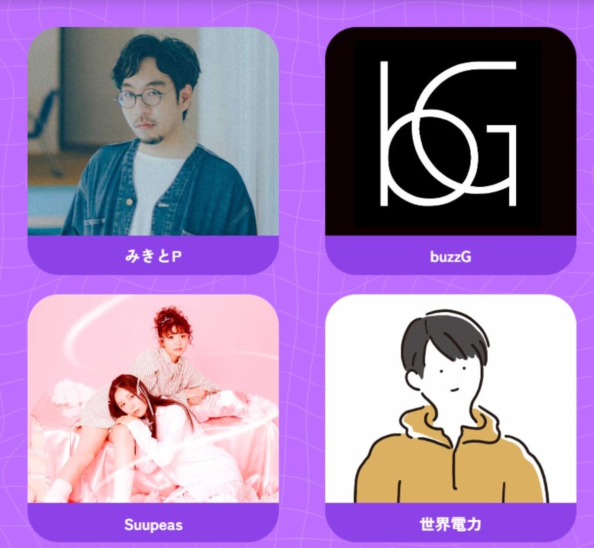 また、「ボカロPライブ」では、YouTubeやSpotifyで数百万再生される人気クリエイター、みきとP、buzzG、世界電力、Suupeasが登場。