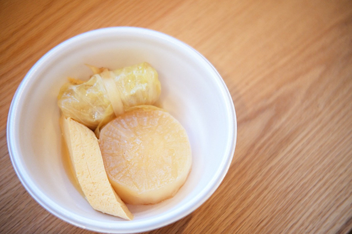 卵焼きの他、定番の大根(120円)やロールキャベツ(150円)も購入。