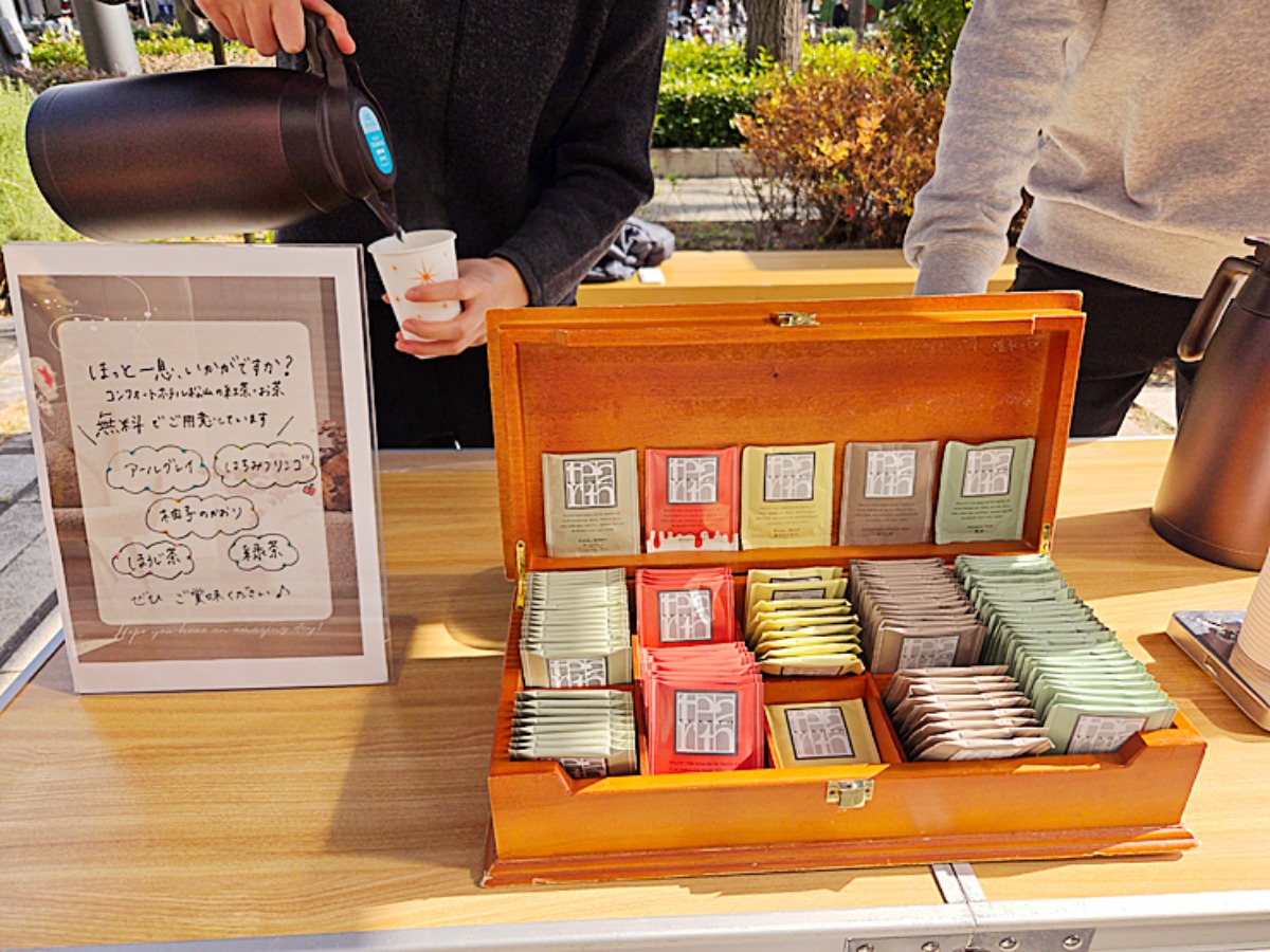 な、なんと無料で温かい紅茶やお茶のサービスがありました。