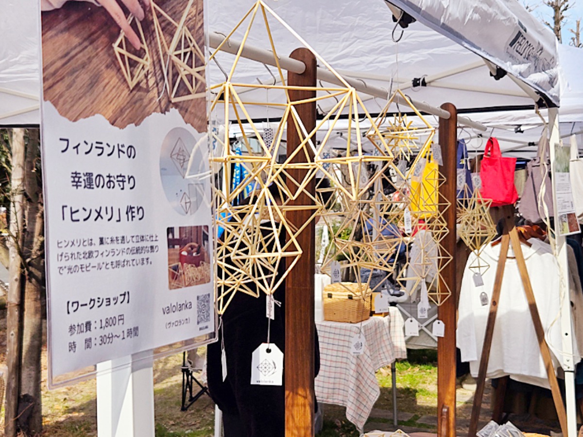麦わらを糸でつないでいった「ヒンメリ」のお店。
