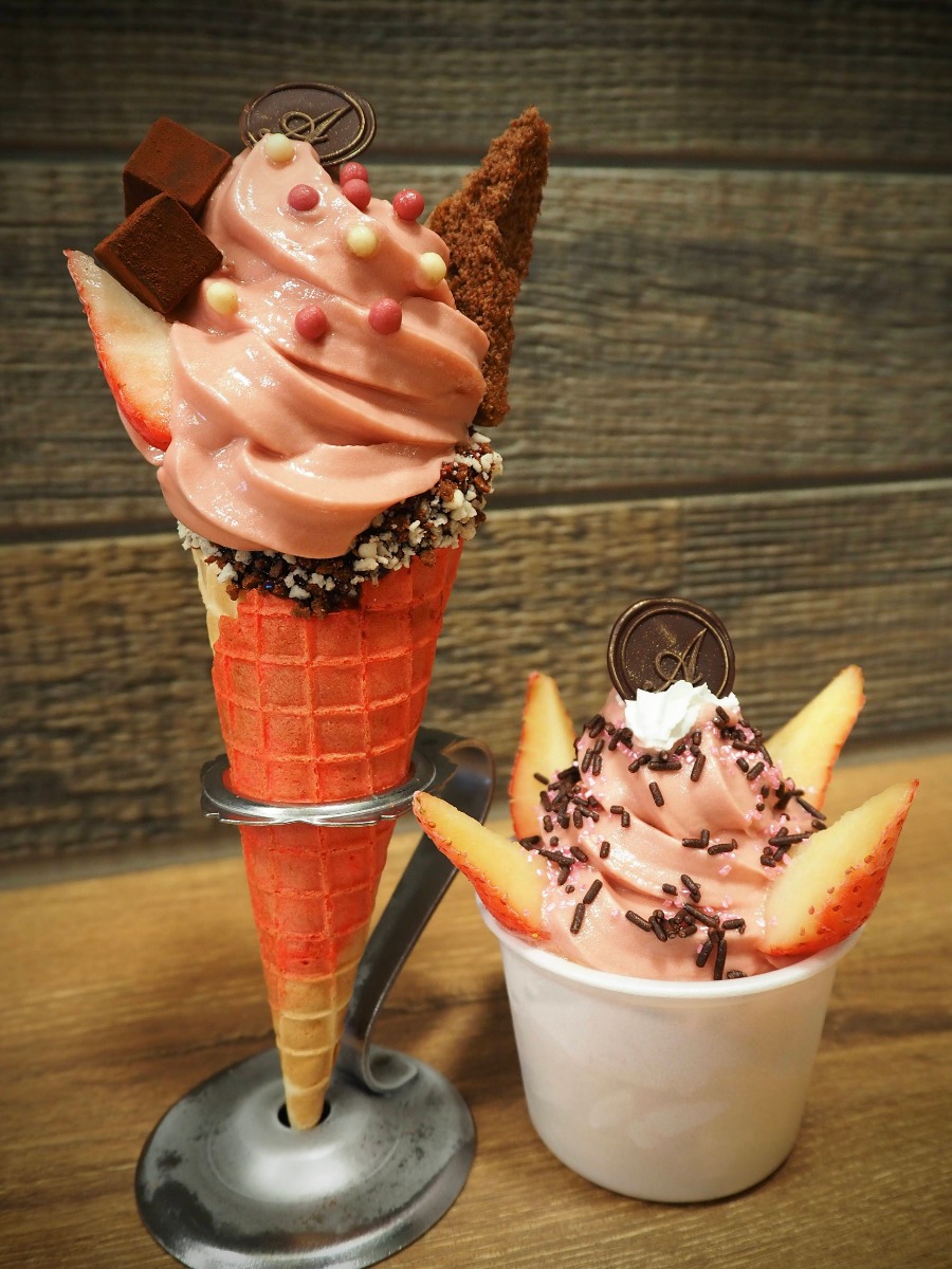 しまなみ温泉 喜助の湯では、アルムのチョコレートケーキ「アルマンド」や「石畳のチョコレート」に、同じく今治市・しまなみ農園のとれたて苺を合わせた贅沢なチョコレートデザートを提供。
