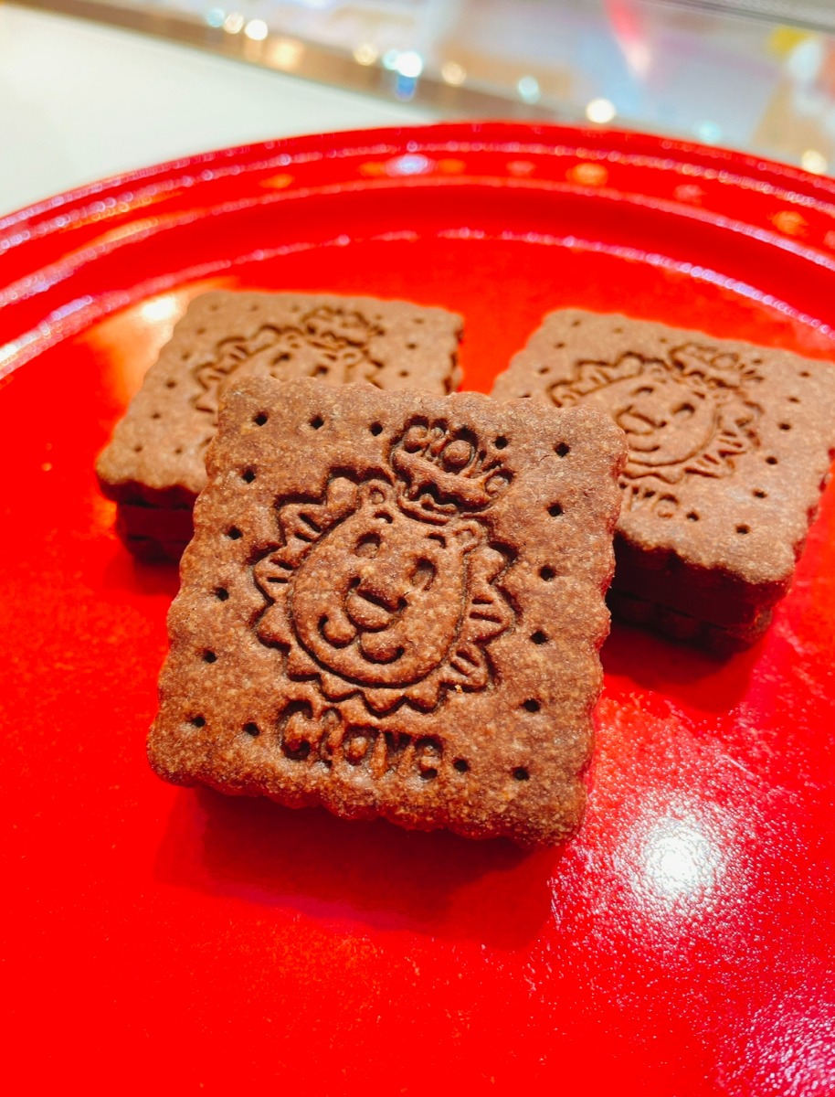 ココナッツ風味のショコラを分厚く切って、ビターサブレでサンドしています。