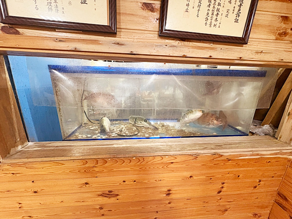 店内に入ると、まず目に入る大きな生け簀。