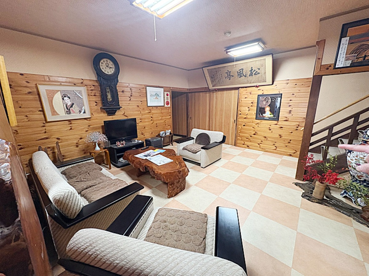 かつて旅館だった頃の名残を感じる待合室。旅館時代の空間には、長年この地で人々を迎えてきた歴史と風格、そして懐かしさが漂います。