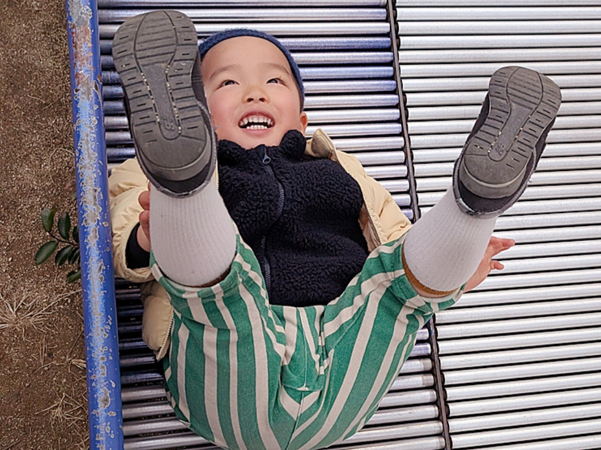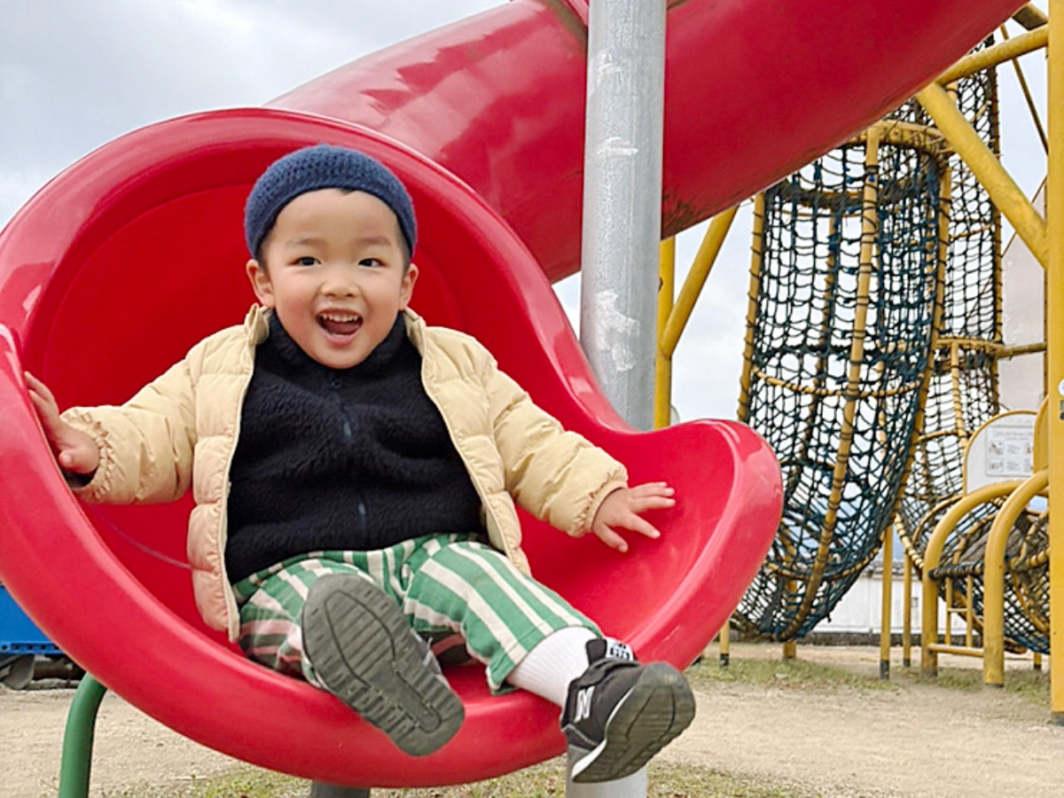 最初は高さと長さに「怖い……」と言っていた息子ですが、ととと一緒に一度滑ってみると…まさかの「もう一回!」「あと一回!」と、大のお気に入りに!笑