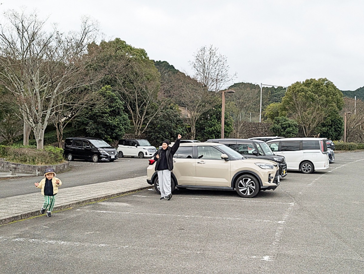 広い駐車場に到着。遊ぶぞー!と息子も張り切っています!