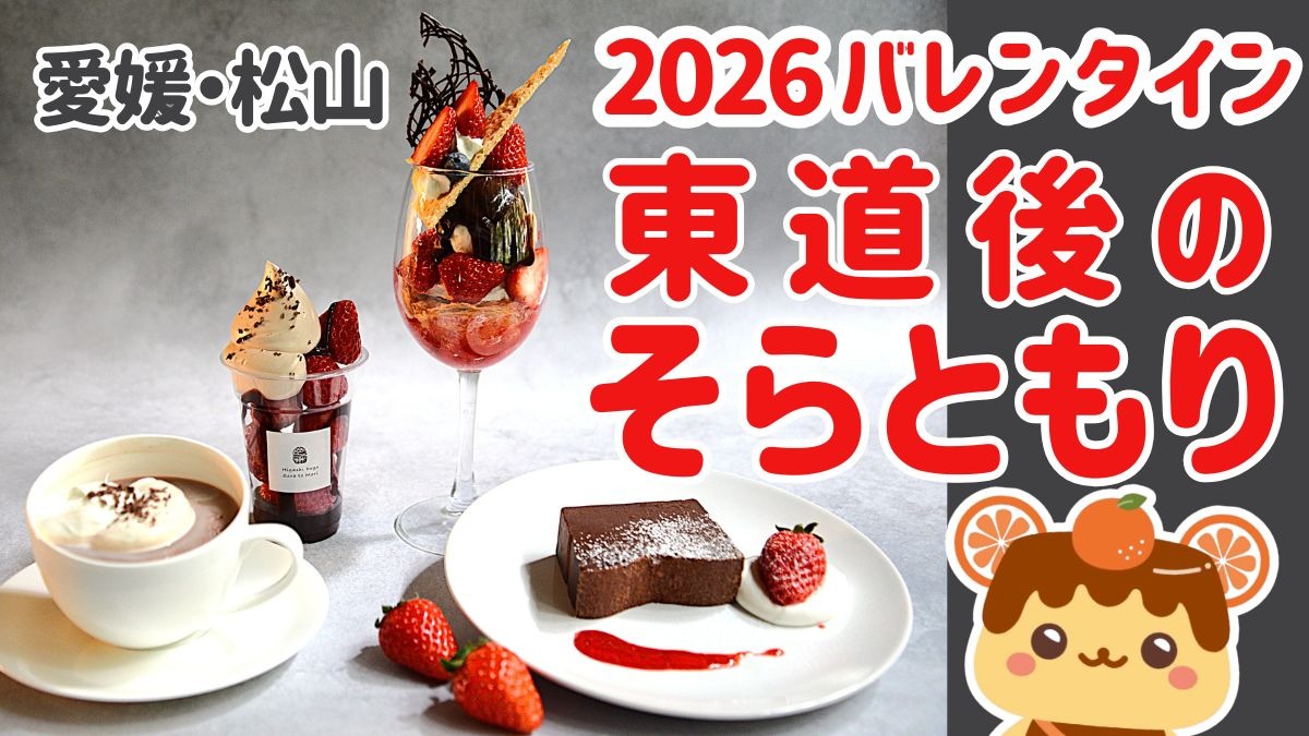 愛媛県松山市の人気温浴施設「東道後のそらともり」では、2026年2月限定でバレンタイン仕様のいちご×チョコレートスイーツが登場。