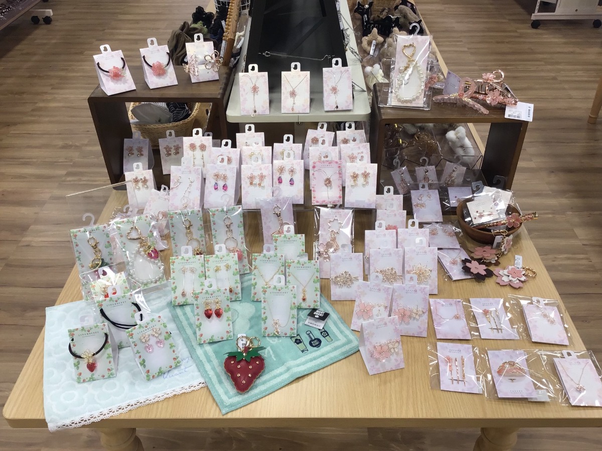 春の訪れを感じさせる、イチゴや桜をモチーフにしたアクセサリーが店頭に並び始めました。