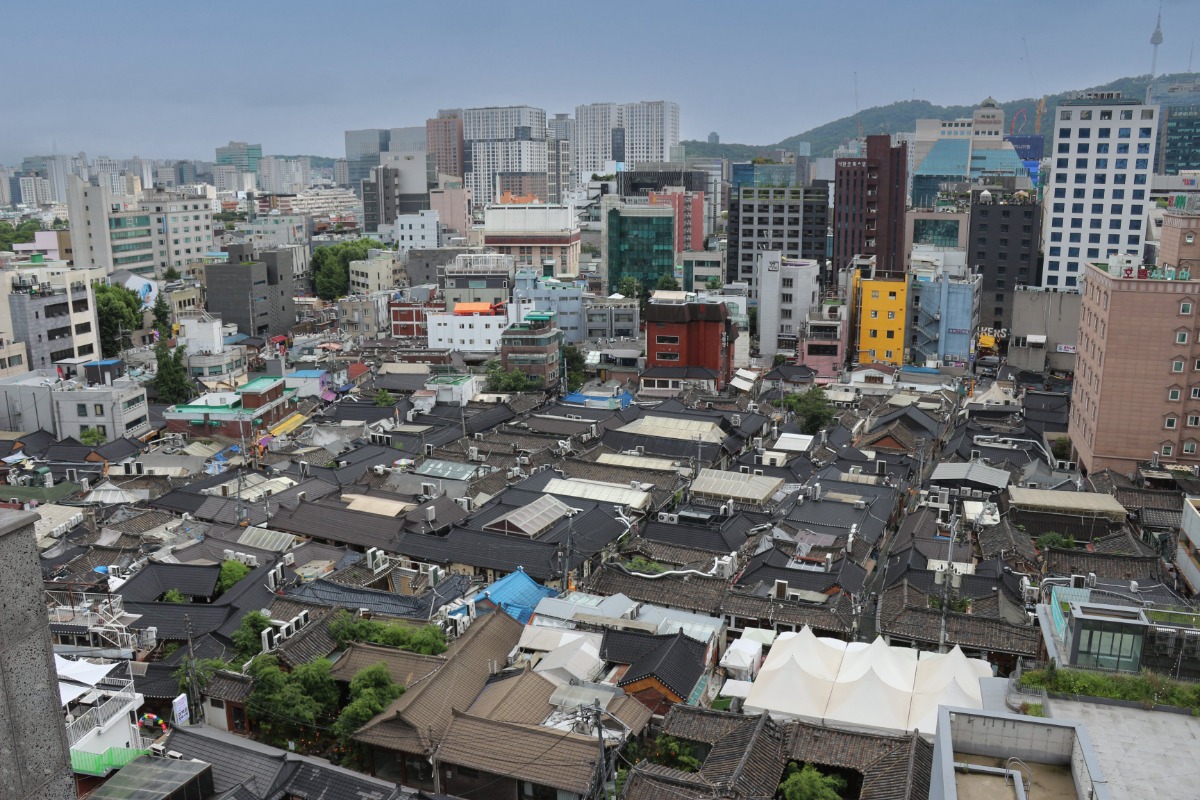 「益善洞韓屋村」は、韓屋が並ぶ人気の路地エリア。近くのホテルから見下ろすと、高層ビルに囲まれた街中に古い屋根が広がり、まるで時間が止まったようでした。でも歩けば最新カフェやショップがずらり。思わずワクワクしました!