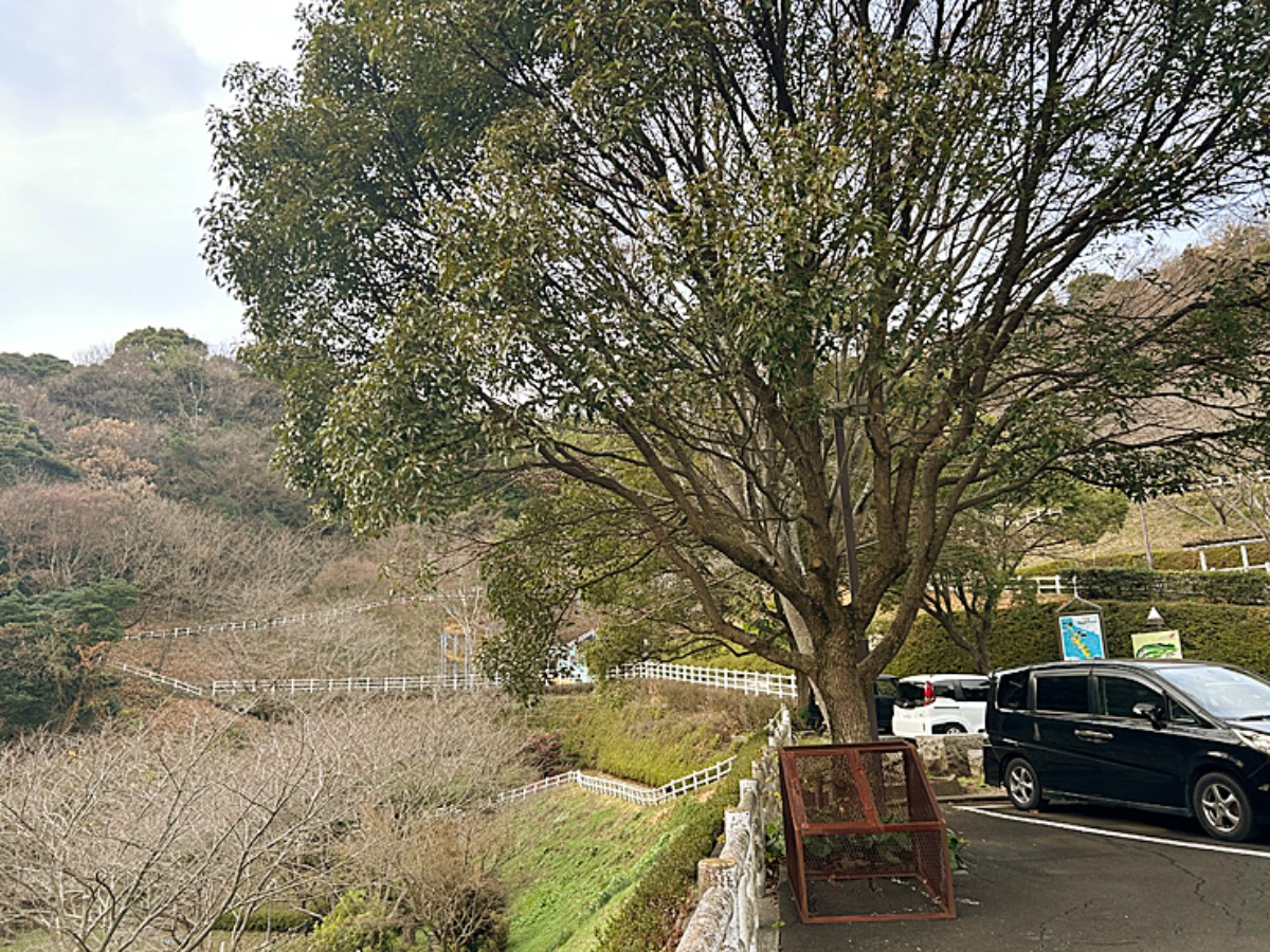 駐車場からの景色です。春、山一面に桜が咲く光景をぜひ拝見したいですね。