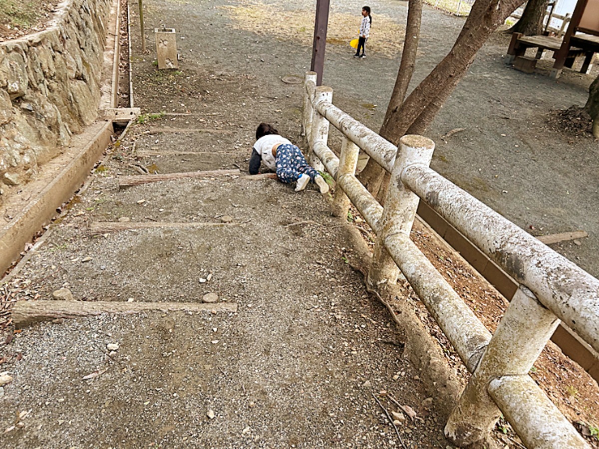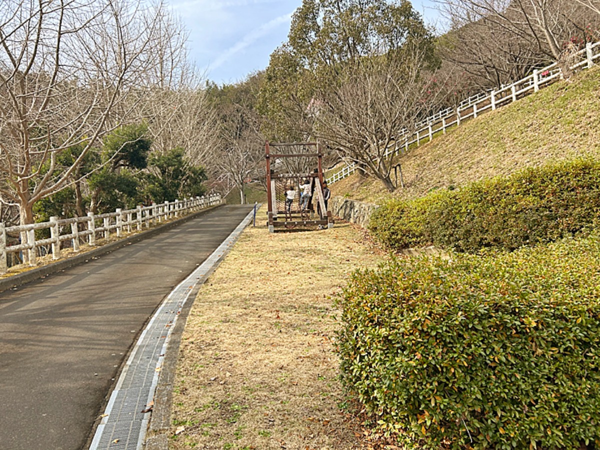 お手洗いを終えて、少し歩いて登ると右側に行く道もあり、ここを進むと少し遊具もあります。