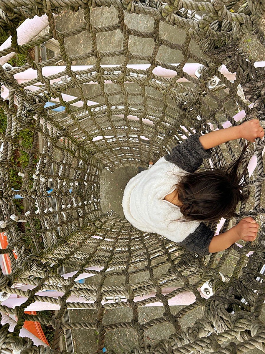 まさかこんな高い網の遊具があるとは。これ急すぎるでしょ?!