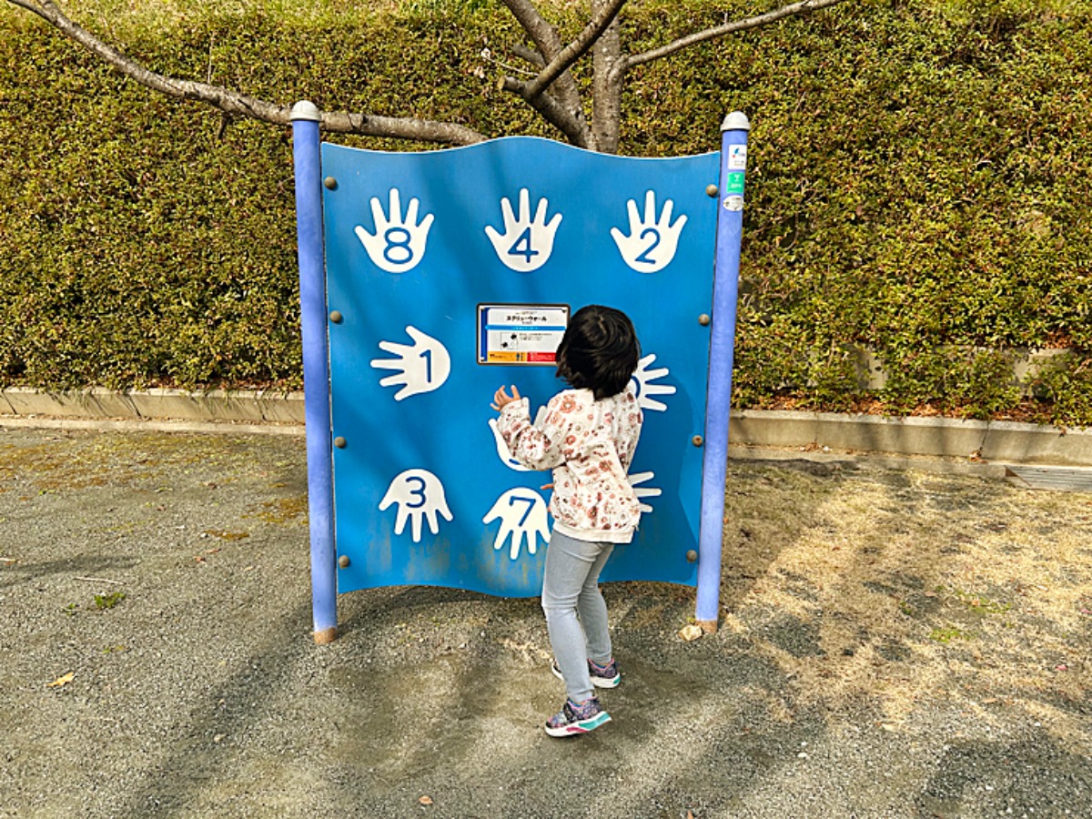 丘ごえが終わると、番号の順に手を置いていく遊具を試しました。簡単そうでも、難しいです。