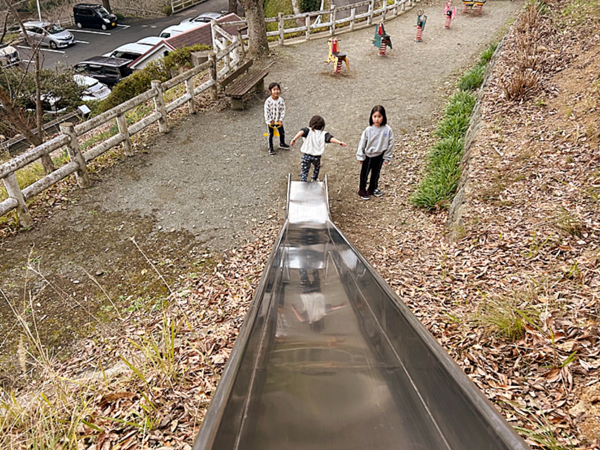 こんなにも山の斜面を見事に無駄なく利用した公園に感無量です。遊具も盛りだくさん。