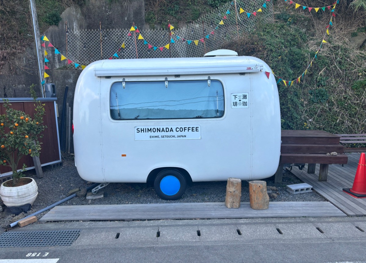 下灘駅近くにある「下灘コーヒー」。今回は開店前でしたが、コーヒーやジュースが楽しめる人気のカフェです