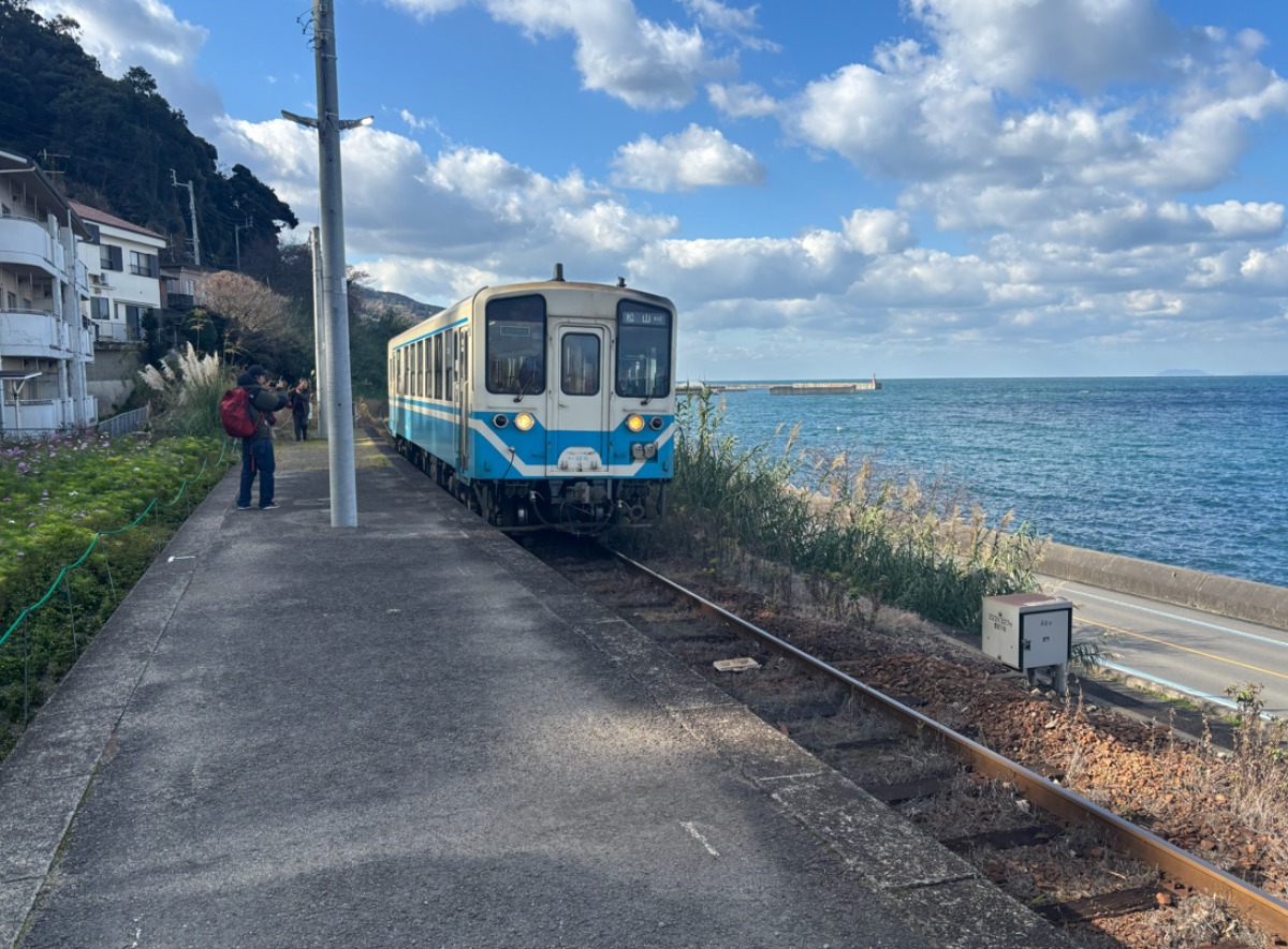 海を眺めていると、電車がゆっくりとホームにやってきました。