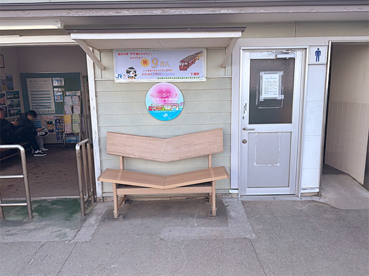 駅構内には「らぶらぶベンチ」と呼ばれるベンチも設置されています。カップルで記念写真を撮るのにぴったりですよ。