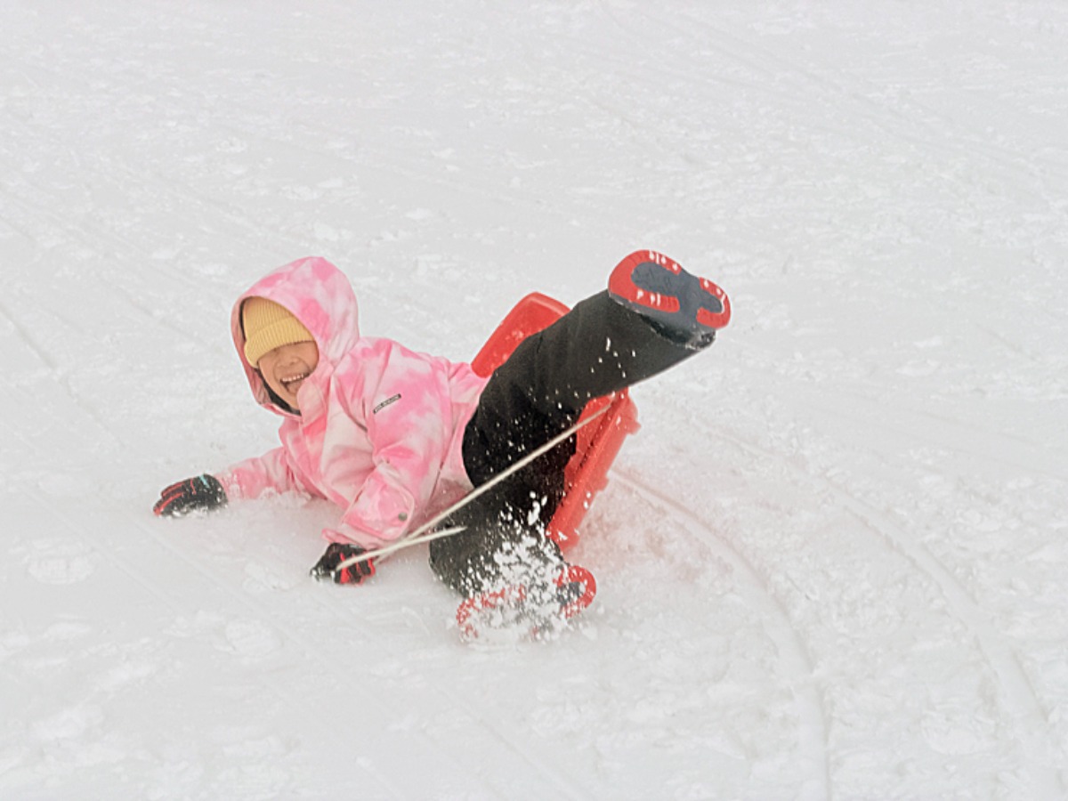 子どもたちはバランスに苦戦しながらも、ソリ滑りに夢中で気づけばあっという間に1時間経っていました!