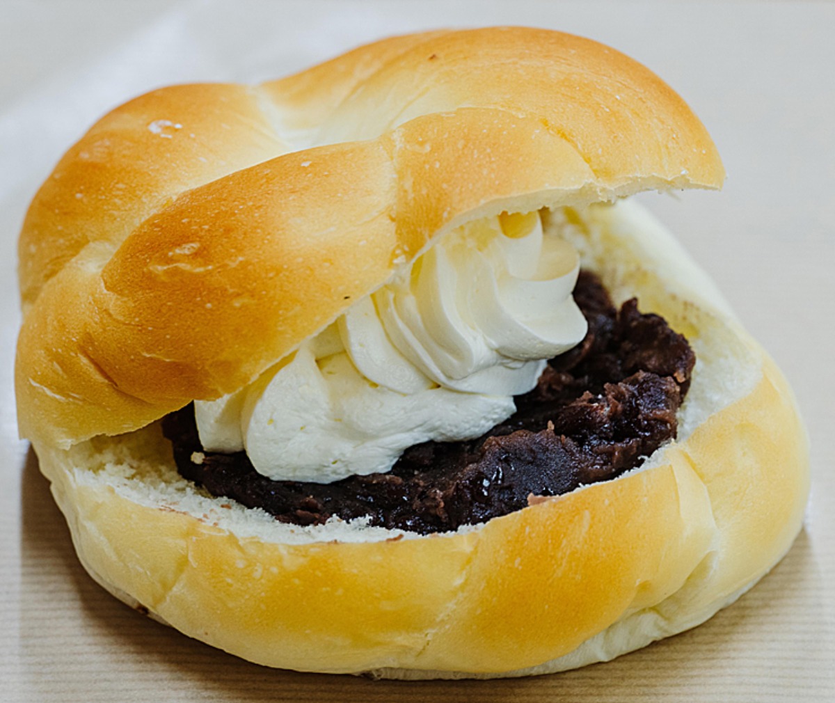材料や配合も昔のまま。ふわふわもっちり生地に、あんことバタークリームを挟んだパン