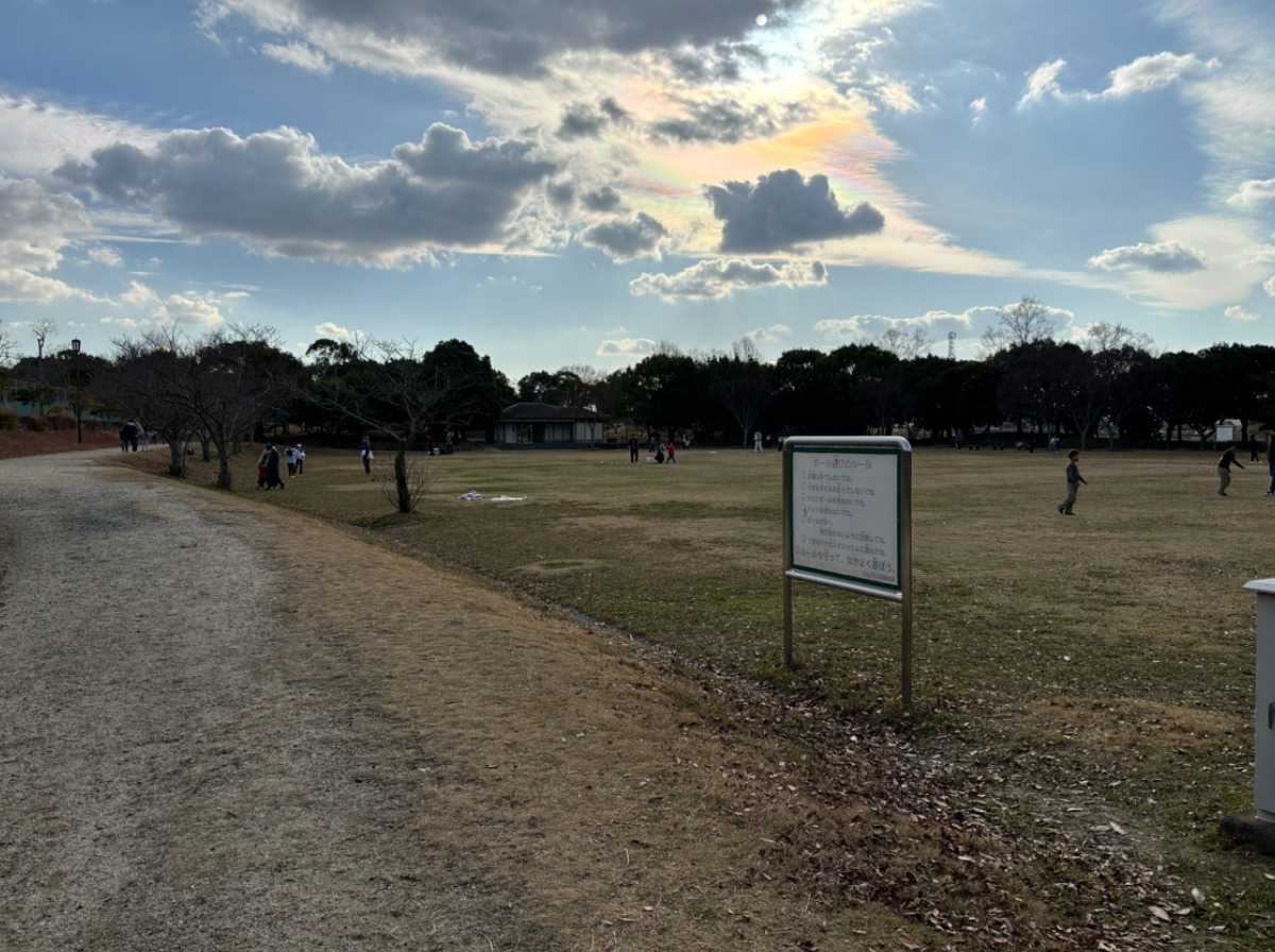園内に入ってまず広がるのは、開放感のある芝生の広場です。日当たりもよく、のびのびと過ごせる空間に、自然と気持ちがほぐれていきました。