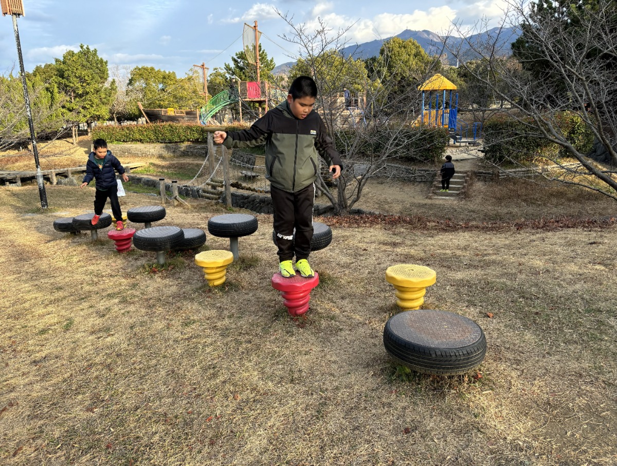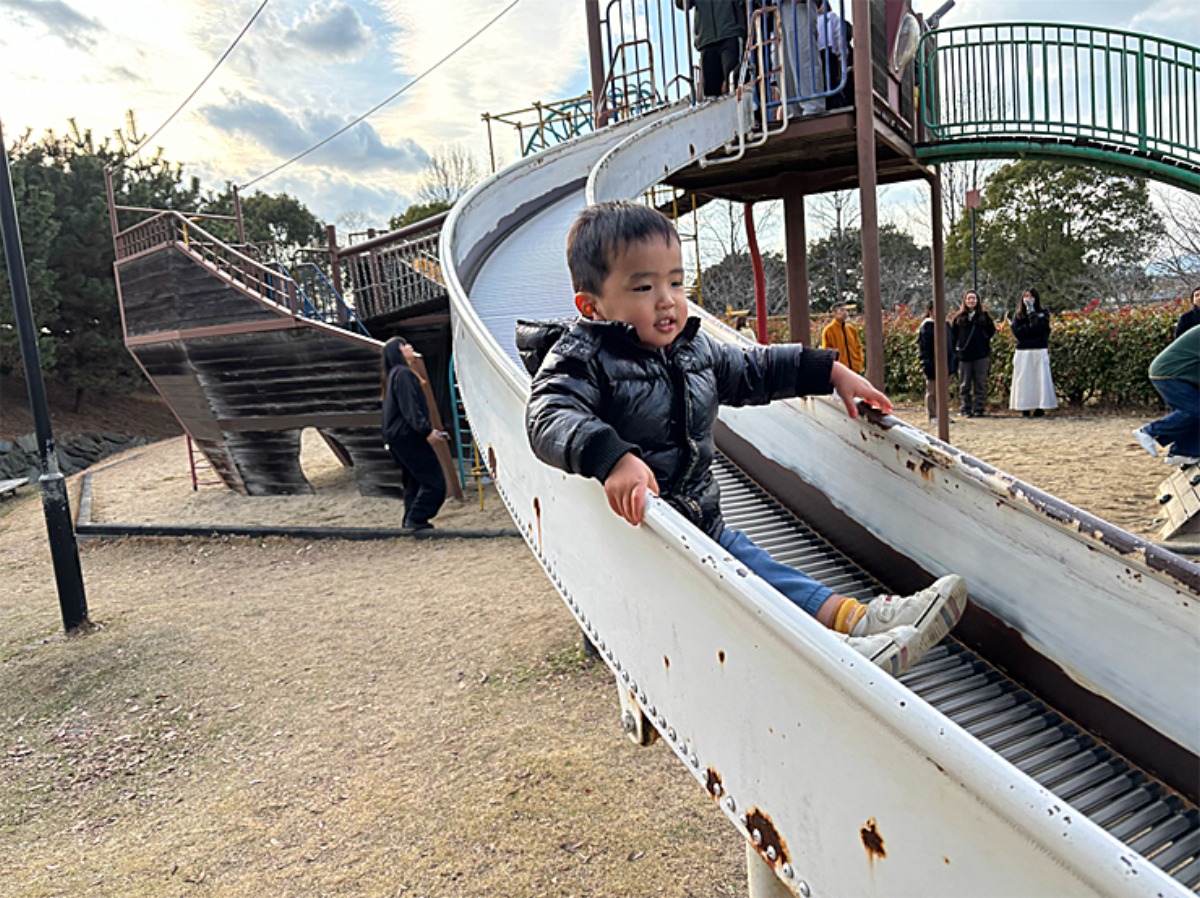 そこで今回は、松山市北条「文化の森公園」(河野別府公園)へ親子でお出かけしてきました。大型遊具やアスレチックコースが充実していて、子どもたちは大はしゃぎ。