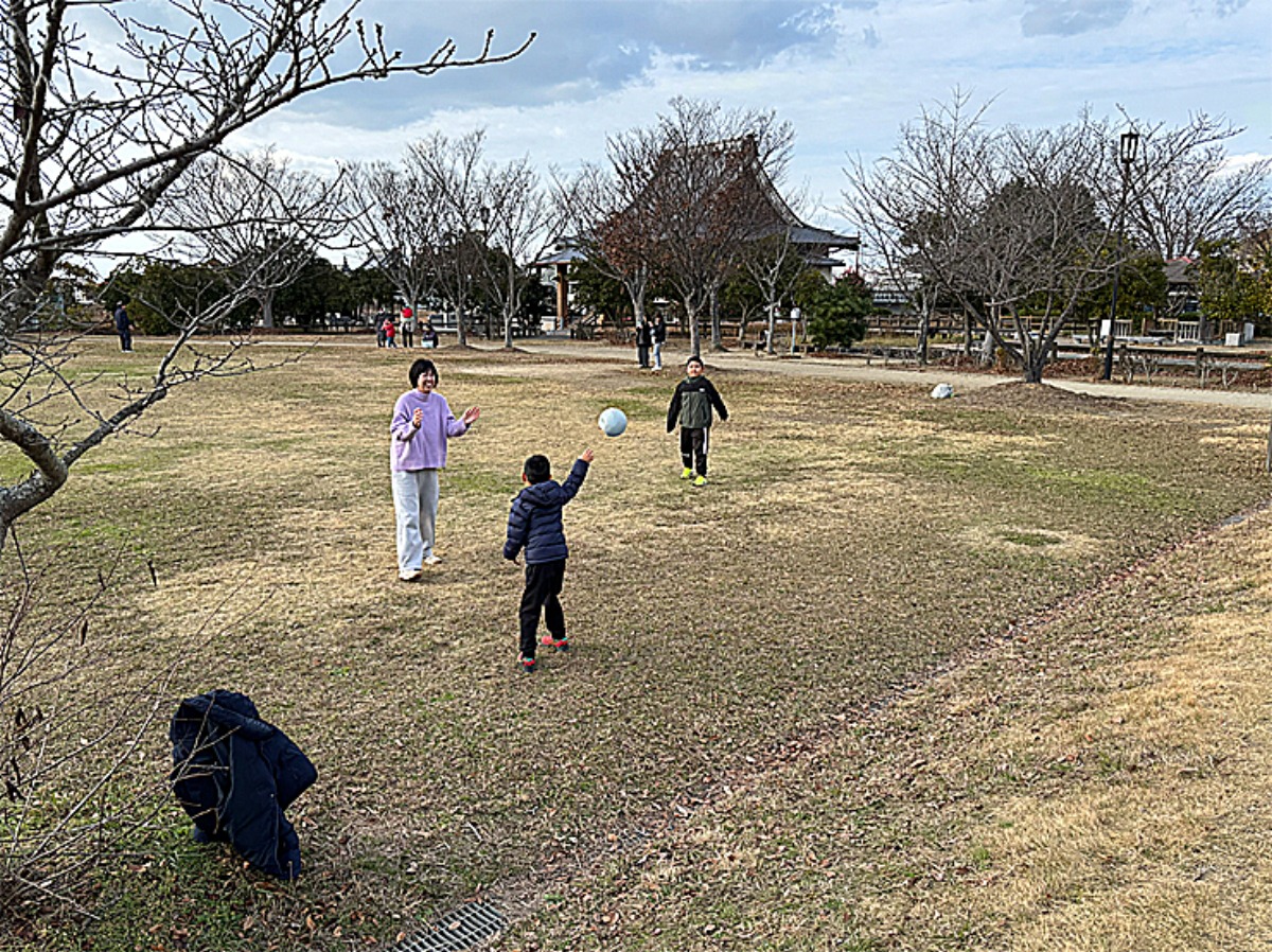芝生広場ではボール遊びをしたり、凧あげを楽しんだりと、思い思いの過ごし方が見られました。