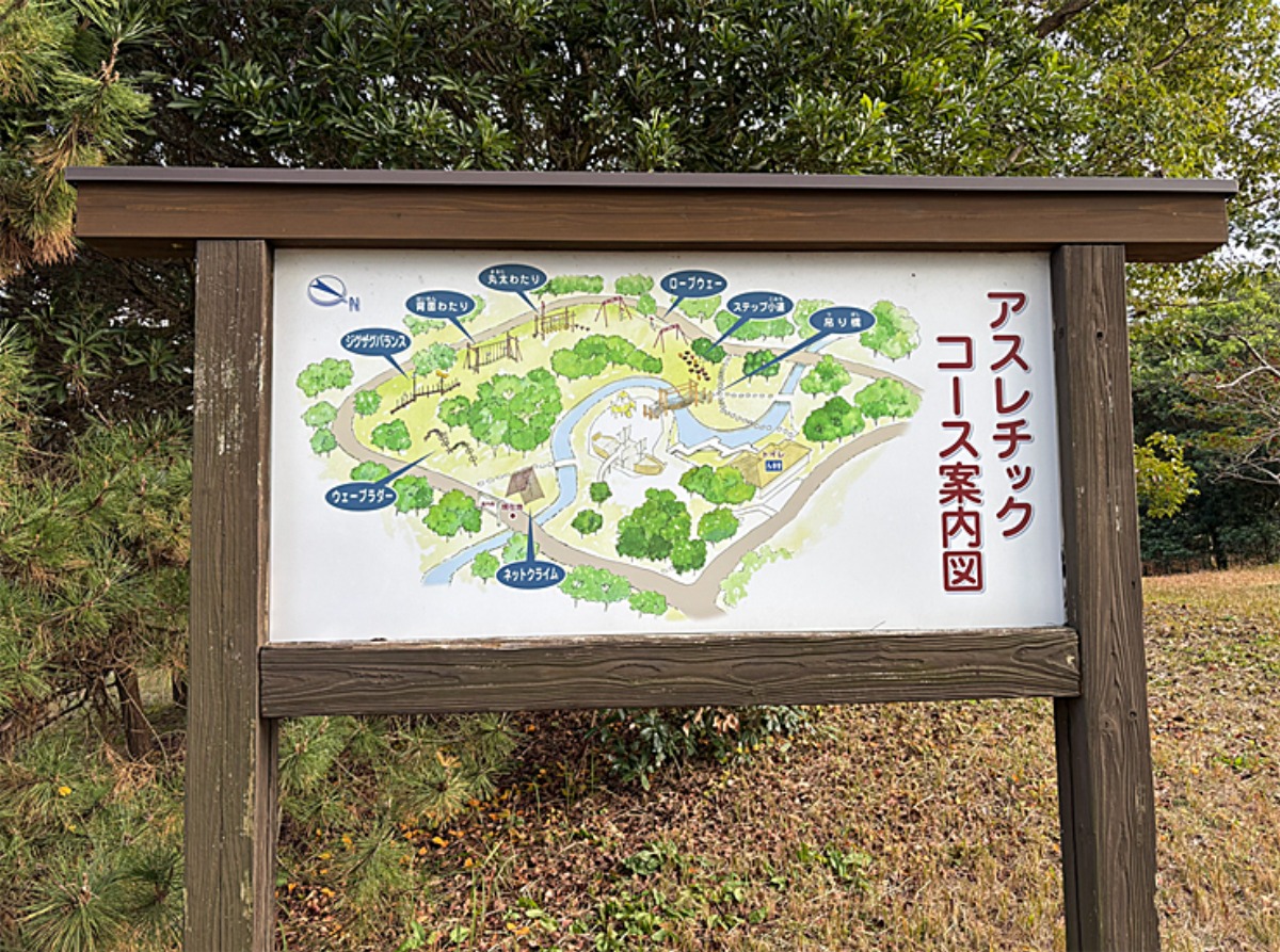 大型遊具の奥には、アスレチックが楽しめるコースがあります。