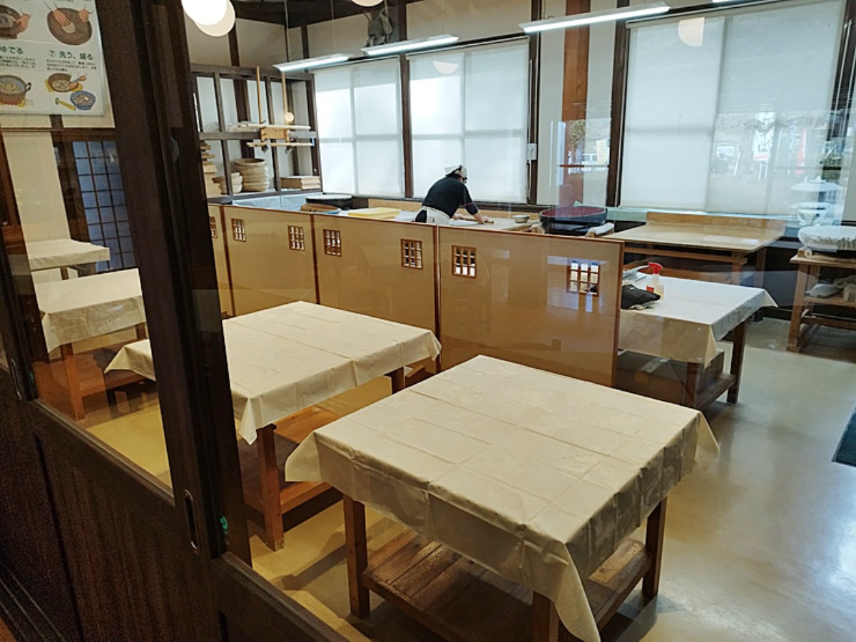 そして一際目を引くのがそば打ち体験が出来るそば打ち道場スペース!