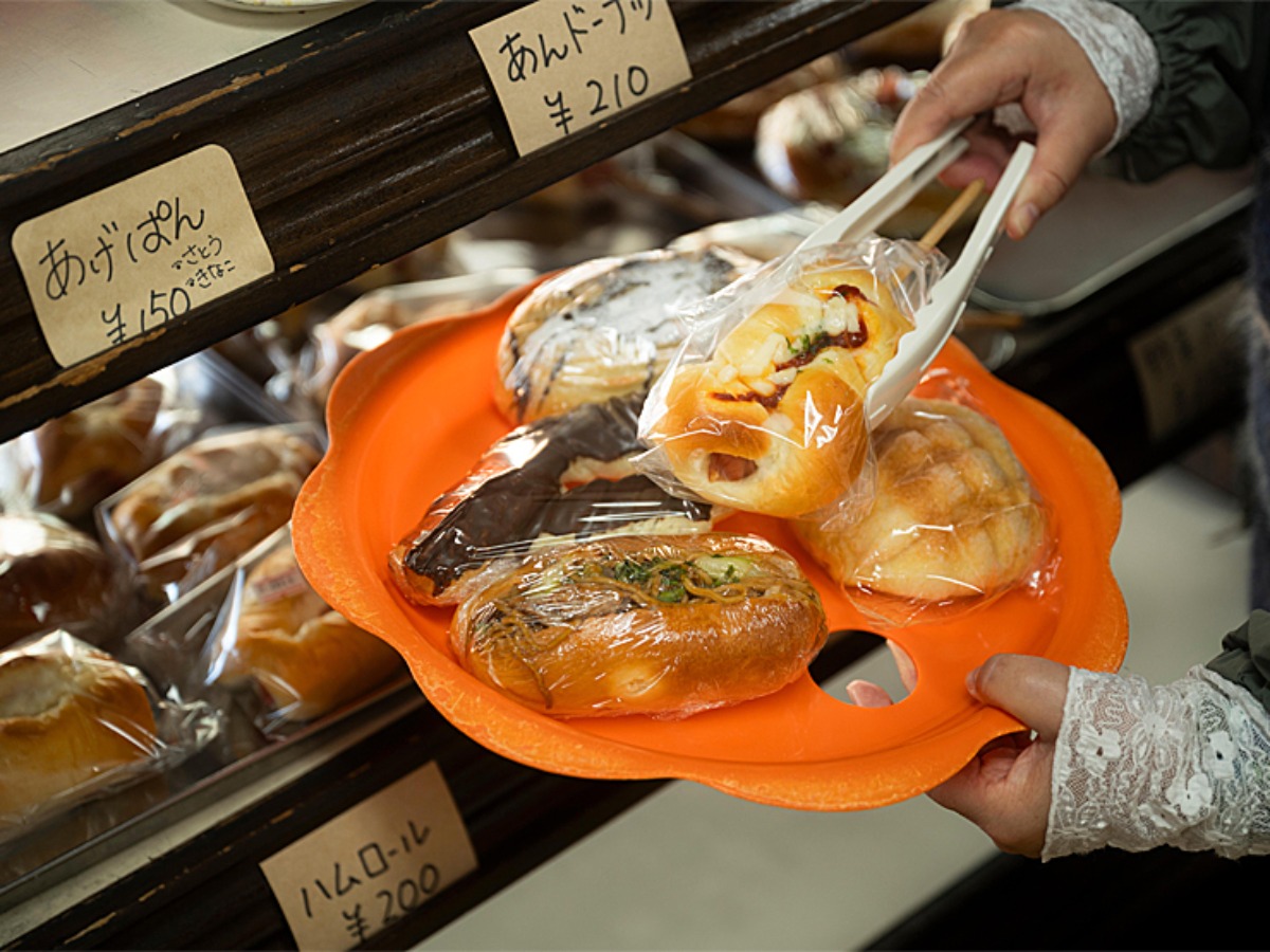 パン選びが楽しくなる、昭和の時代から使い続けている、レトロな花型トレイ