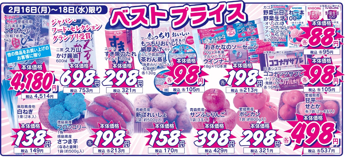 2月16日(月)~2月18日(水)ベストプライス