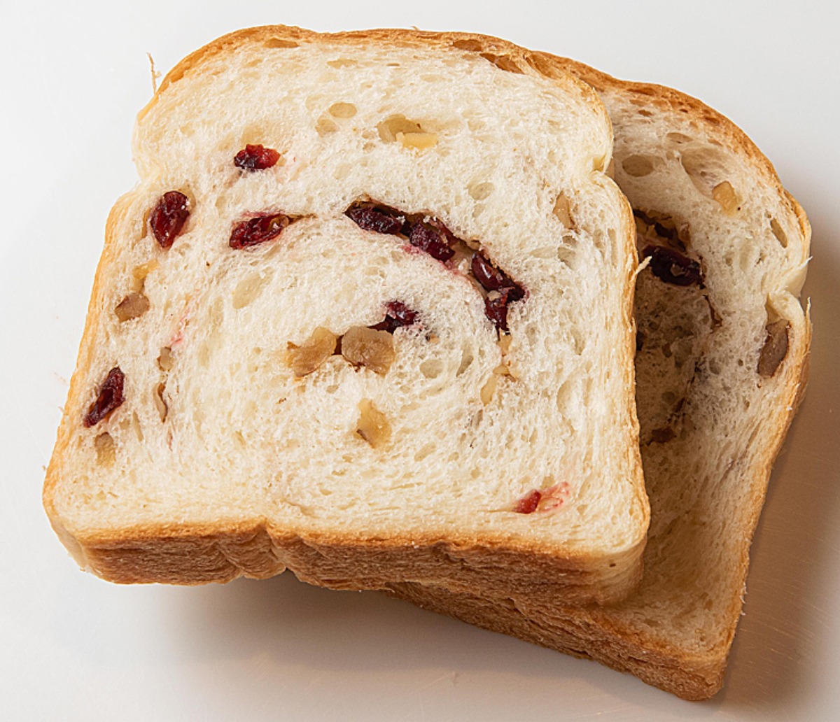 クランベリーとくるみの食パン。そのままでもトーストしても美味しく、クリームチーズをつけても◎