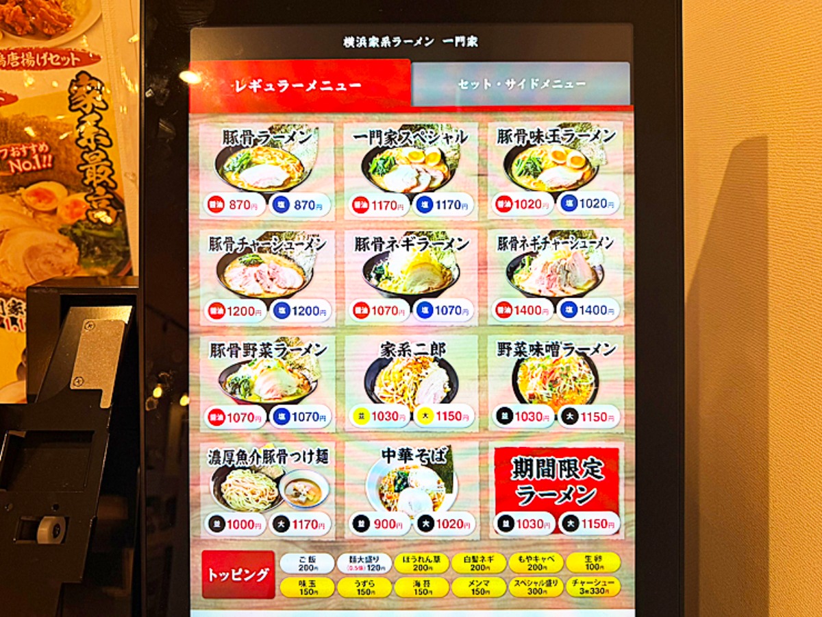 一門家では、来店したらまず入口の券売機で食券を購入するスタイル。