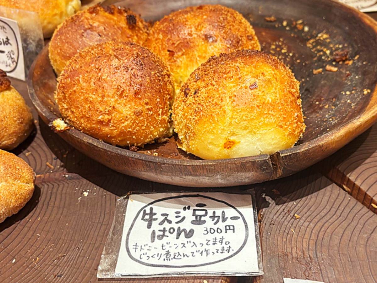 こちらは、旦那さんの朝ごはん用に購入した「牛すじ豆カレーぱん」(300円)です。カレーが大好きなので、これを選びました!