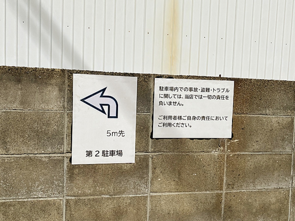 お店の横を通って裏に行くと、駐車場があります。