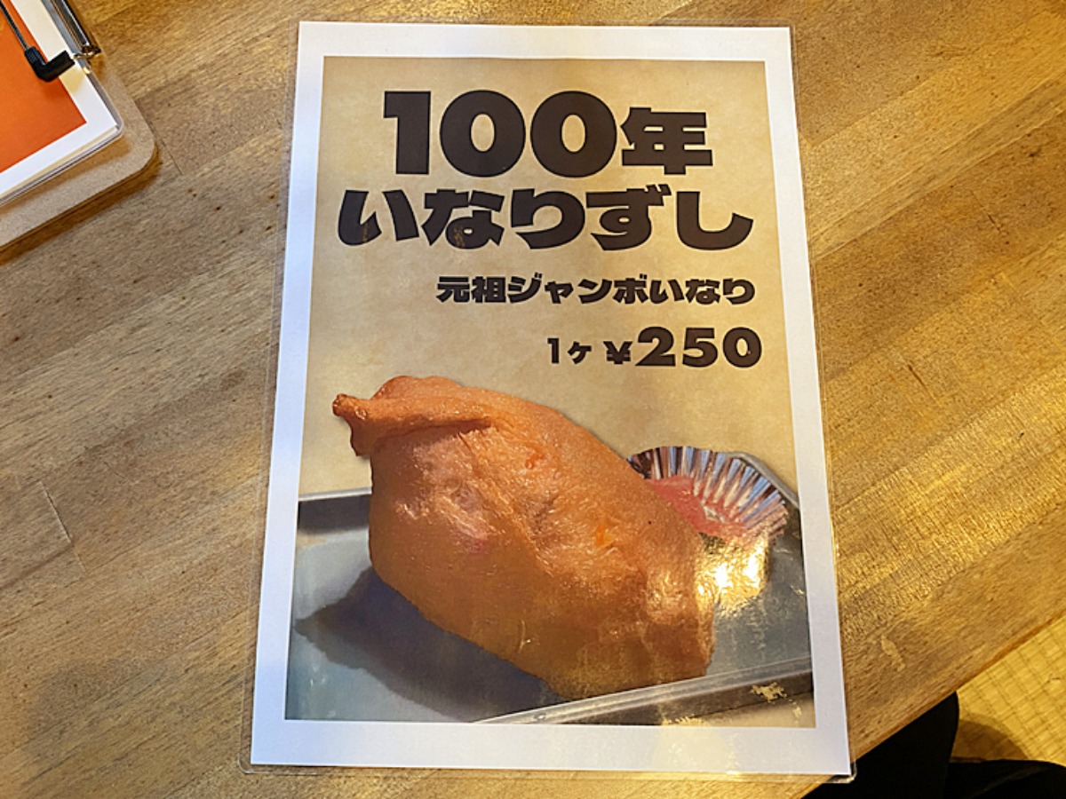 最初に持ってきてくださったのは、一番気になっていた「100年いなりずし(元祖ジャンボいなり)」。