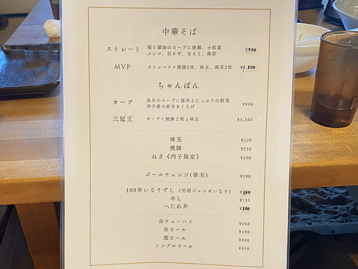 シンプルなメニュー表で、中華そばとちゃんぽんがメインのようです。