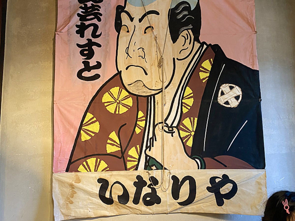 お店の名前が入った凧が壁に飾られていました。