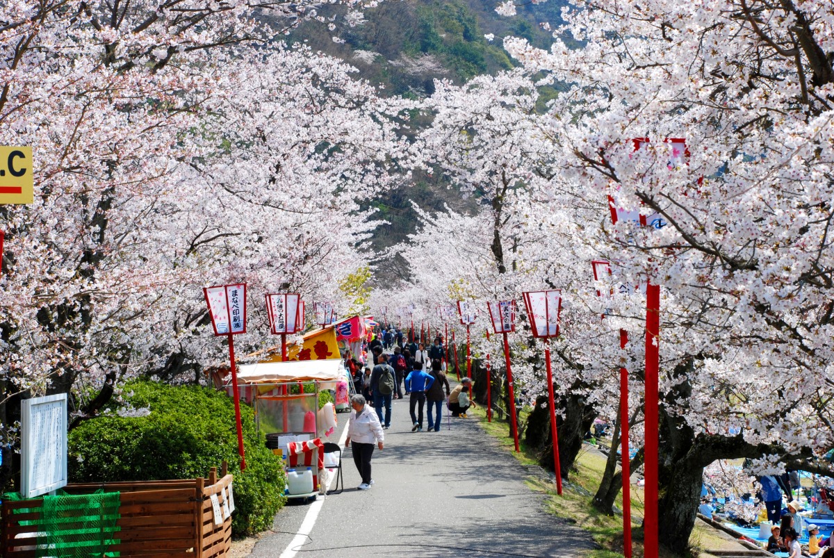 桜のシーズン中は、20数店舗の出店もあるので、美味しいもの巡りもおすすめ。食事やおやつを楽しみながらのお花見で、お腹も心も満たされる春の時間を満喫しましょう。