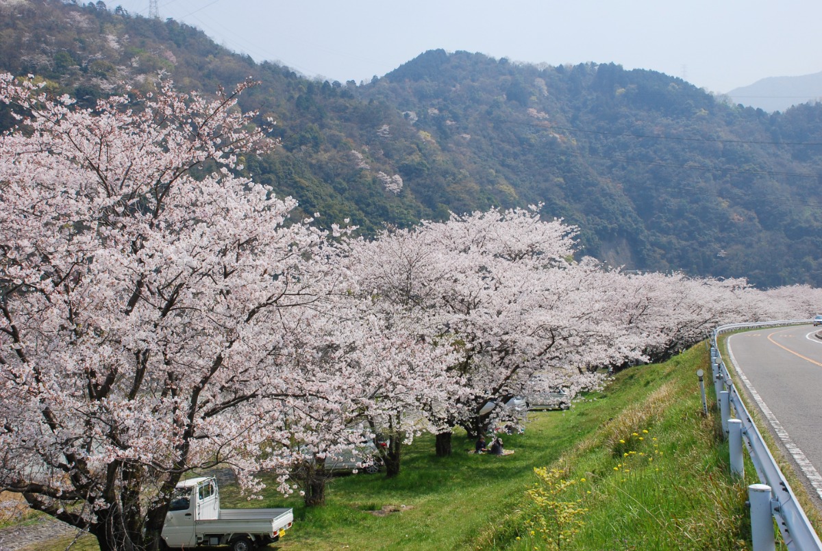 八堂山の麓にあり、「四国の小嵐山」と称されるほどの美しい景色が広がり、特に春が一番の見頃。桜の名所として知られています。
