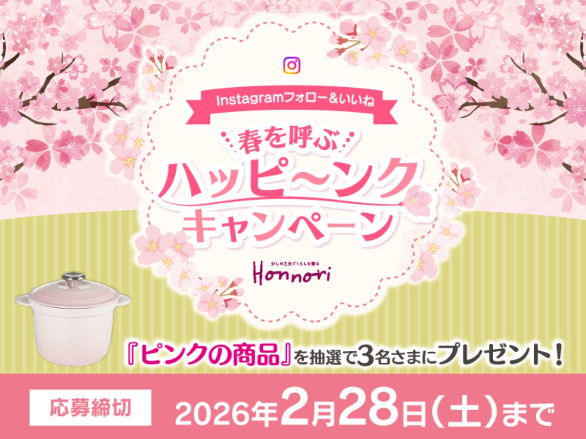 フジのWEBマガジンHonnori (ほんのり)のインスタグラム公式アカウントをフォローして、「春を呼ぶ ハッピ~ンク」キャンペーン投稿に「いいね」すると応募完了!