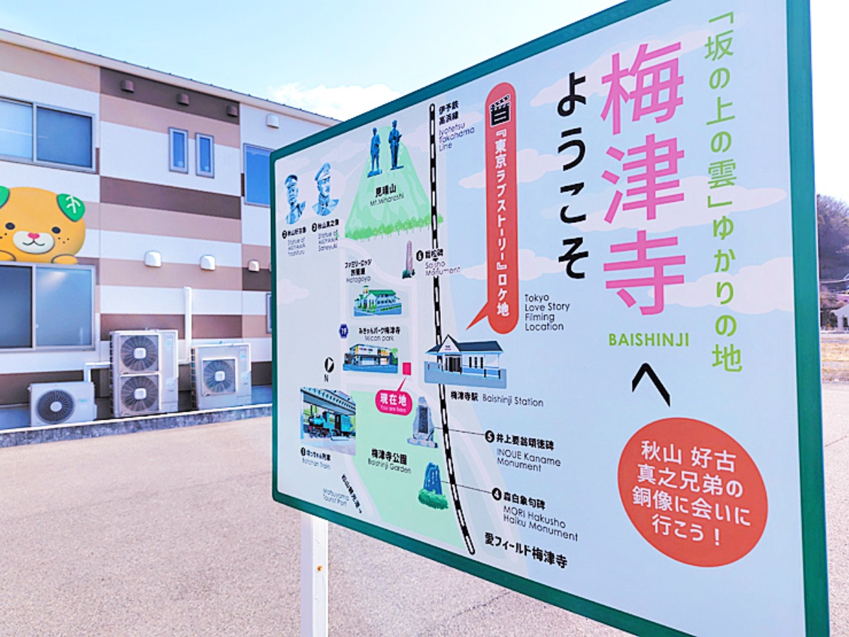 梅津寺駅前に周辺の案内板がありました。