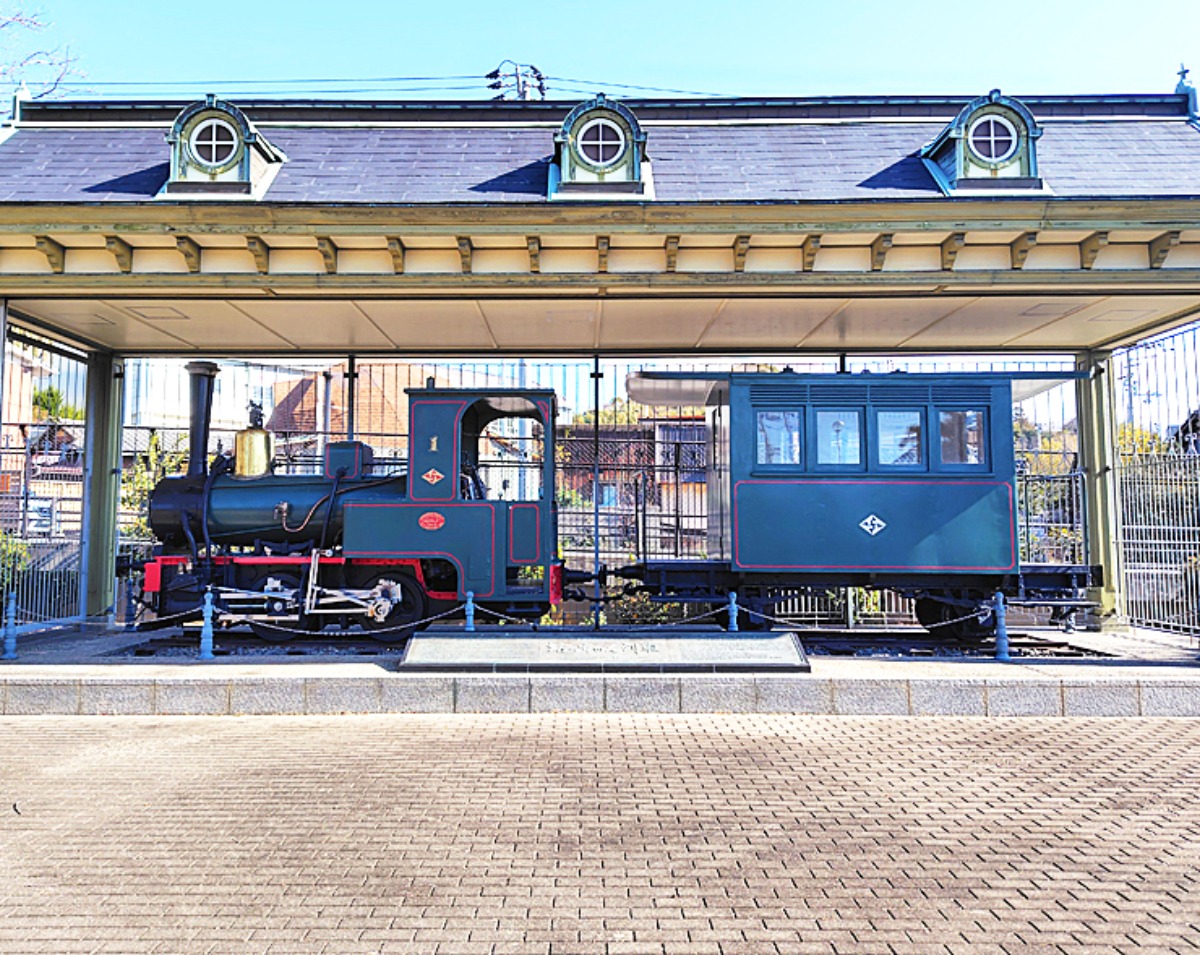 1880年の開業当時に走っていた「甲1型1号機関車」で、現存する最古の軽便機関車として、日本国有鉄道指定記念物・県指定民俗資料に指定されているそうです。