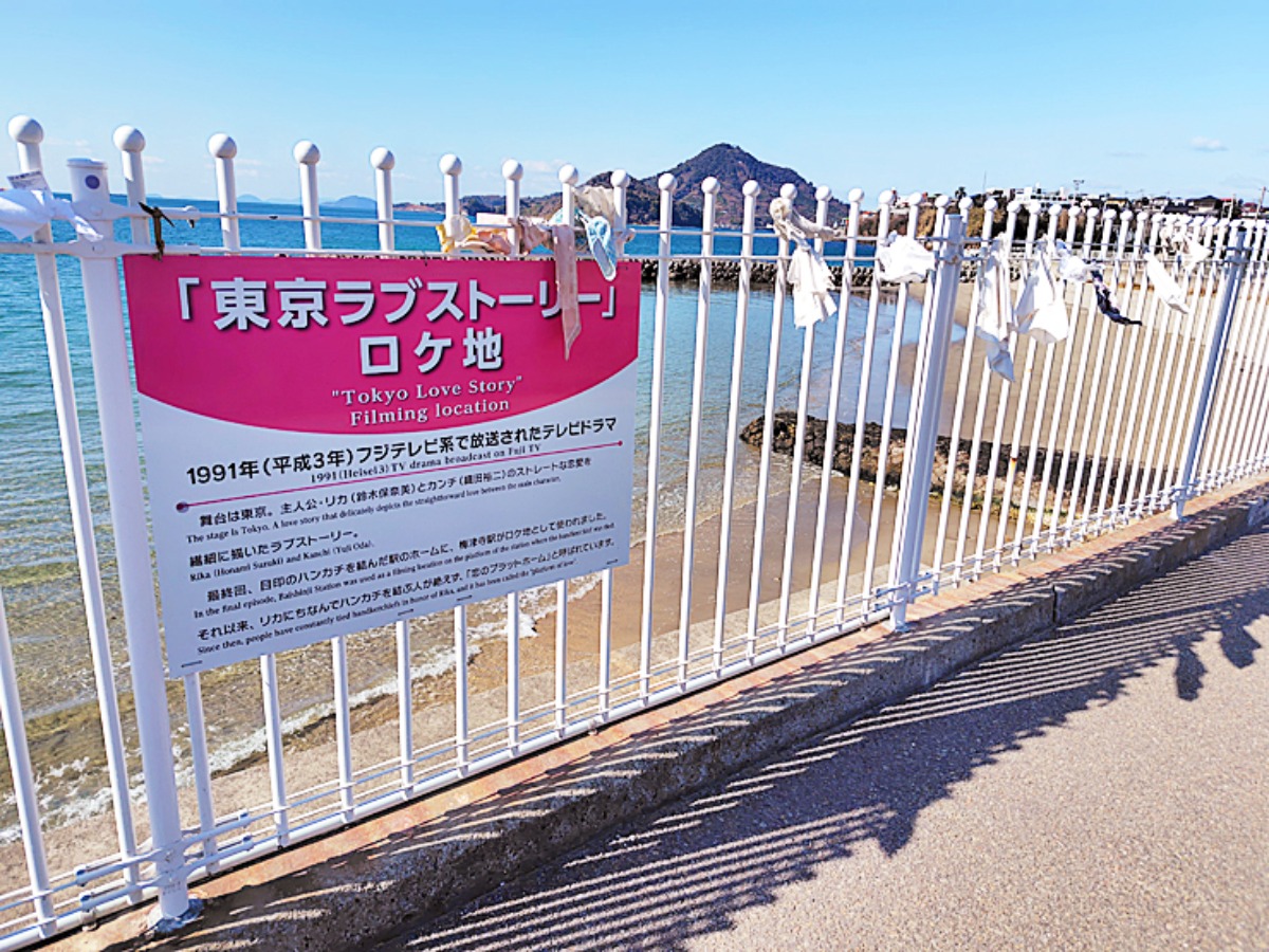 その周辺には最終回の名シーンにちなんで、令和の現在もハンカチが結ばれています。