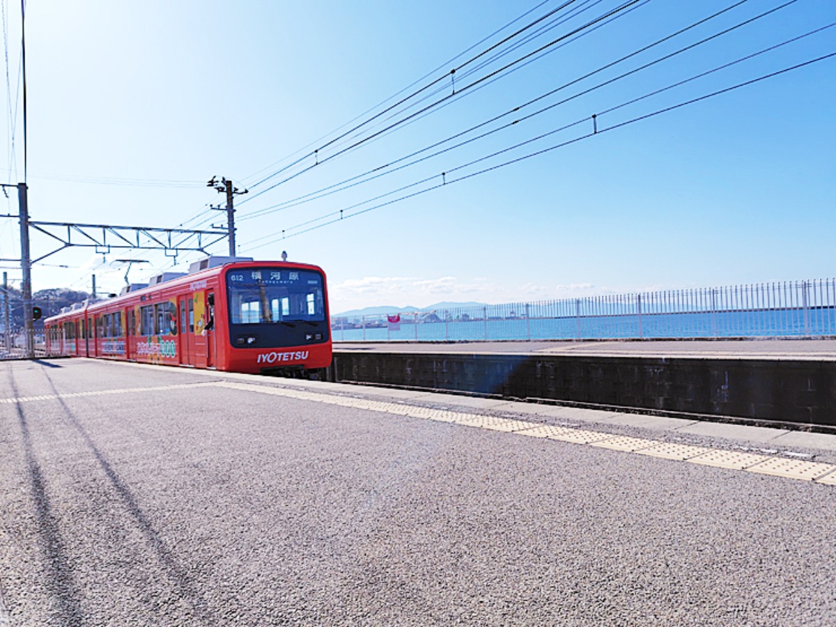 海の近くにある梅津寺駅。撮り鉄には最高のロケーション!