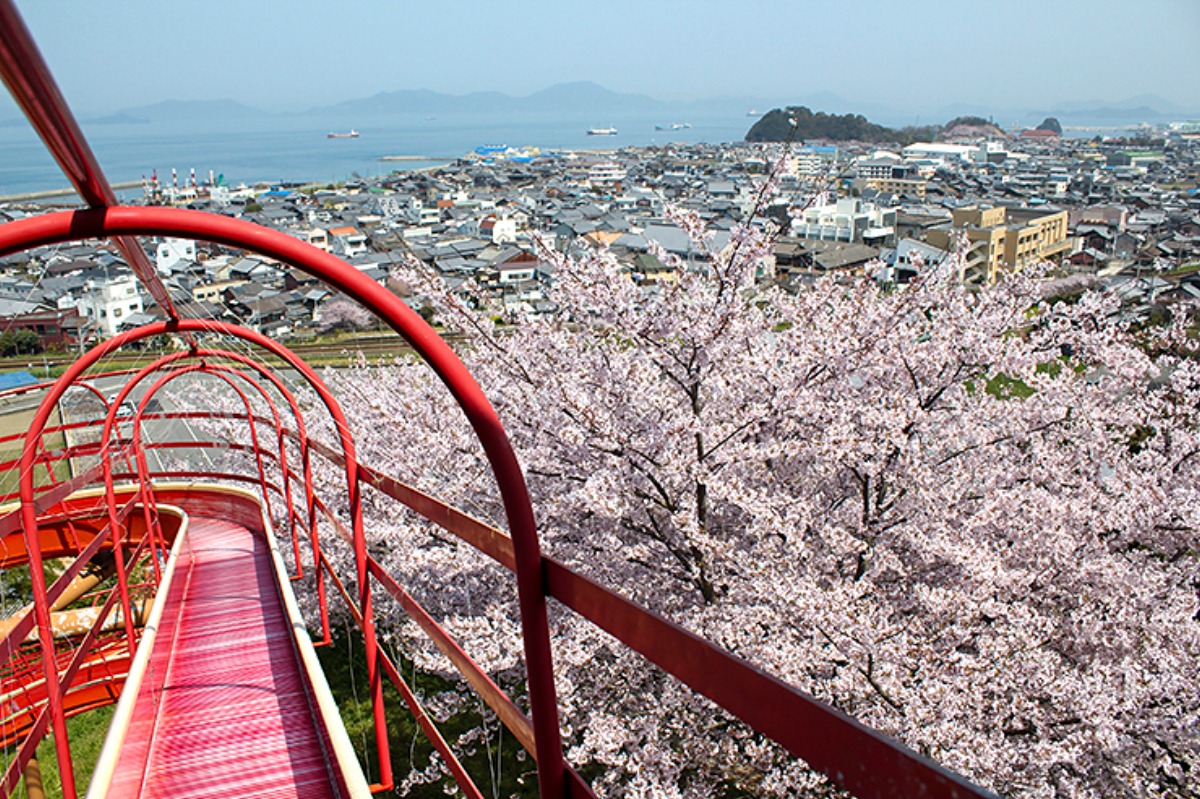 この時期にはソメイヨシノやしだれ桜が咲き誇り、公園は高台に位置しているため、晴れた日には瀬戸内海の絶景も楽しめますよ。